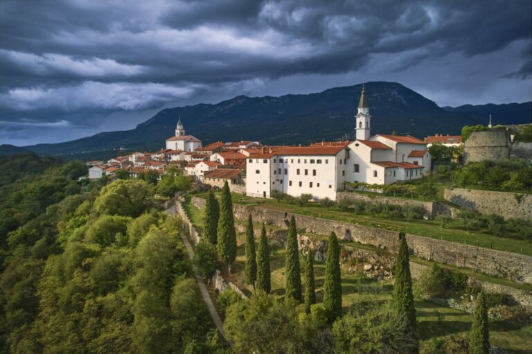 Čudoviti vtisi z Vipavskega Križa (nad Ajdovščino) so krasna popotnica za nadaljevanje proti Kostanjevici na Krasu, kamor se odpeljite skozi Dornberk in Komen.